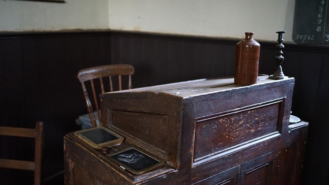 This one-room National School was the first building brought stone-by-stone to the Folk Park.